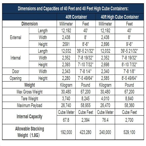 40' long x 8' wide x 8' 6†high 40' long x 8' wide x 9' 6†high cube